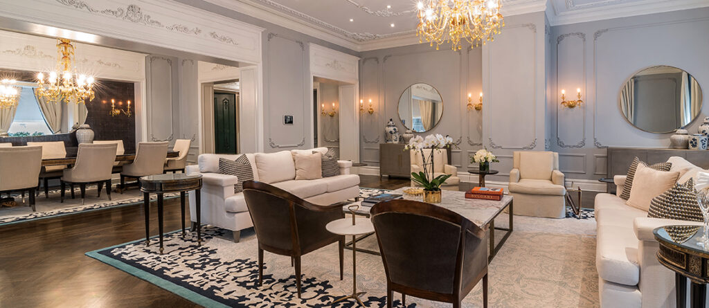 The Royal Suite at The Plaza embodies classic elegance with modern sophistication. Resplendent with crystal chandeliers, lavish furnishings, and personalized services, it delivers the quintessential New York experience. Guests can indulge in gourmet dining, scenic city vistas, and enjoy the cultural richness of the surrounding metropolis, securing a timeless stay steeped in luxury and tradition.