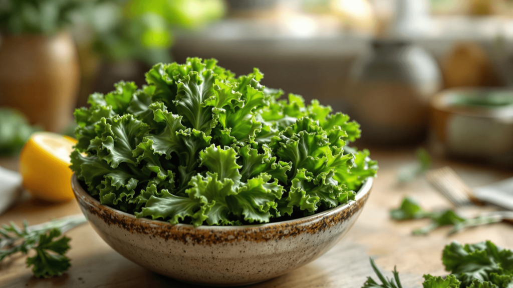 Kale, often dubbed a “nutritional powerhouse,” is a leafy green low in calories but incredibly high in nutrients. It offers an abundant source of vitamins A, C, and K and is laden with antioxidants. These nutrients support various bodily functions, from improving vision and aiding skin health to bolstering bone strength. Kale can also help detoxify the body and prevent chronic diseases, making it an essential food for maintaining overall health and well-being.